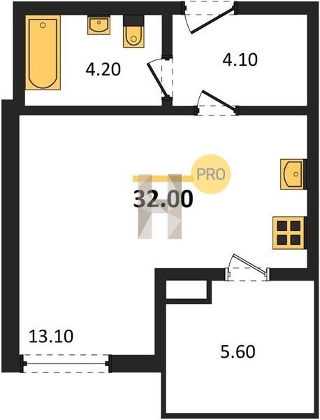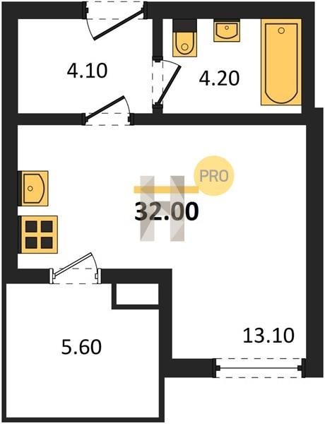 Площадь от 32 м2