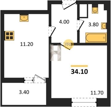 Площадь от 34.1 м2